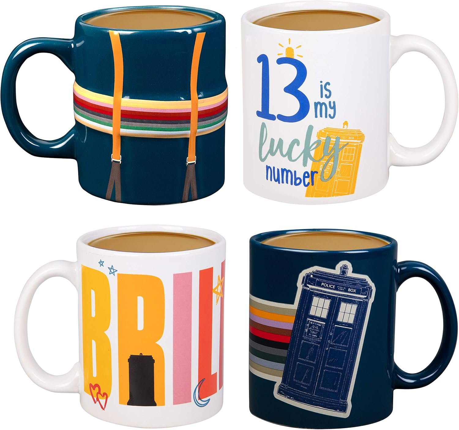 أكواب سيراميك بطباعة ثابتة وألوان واضحة.